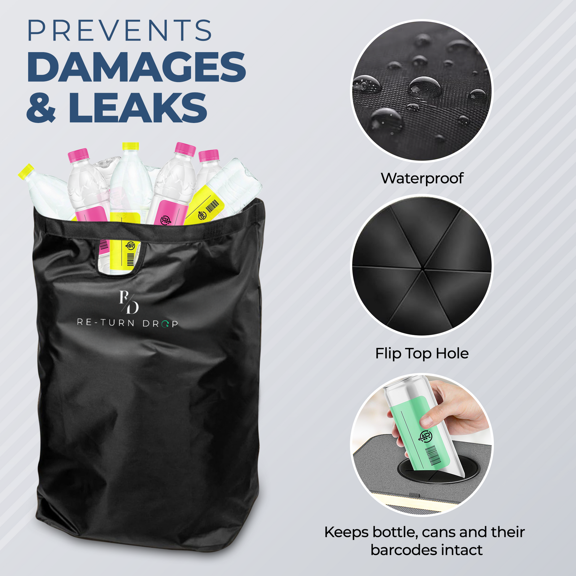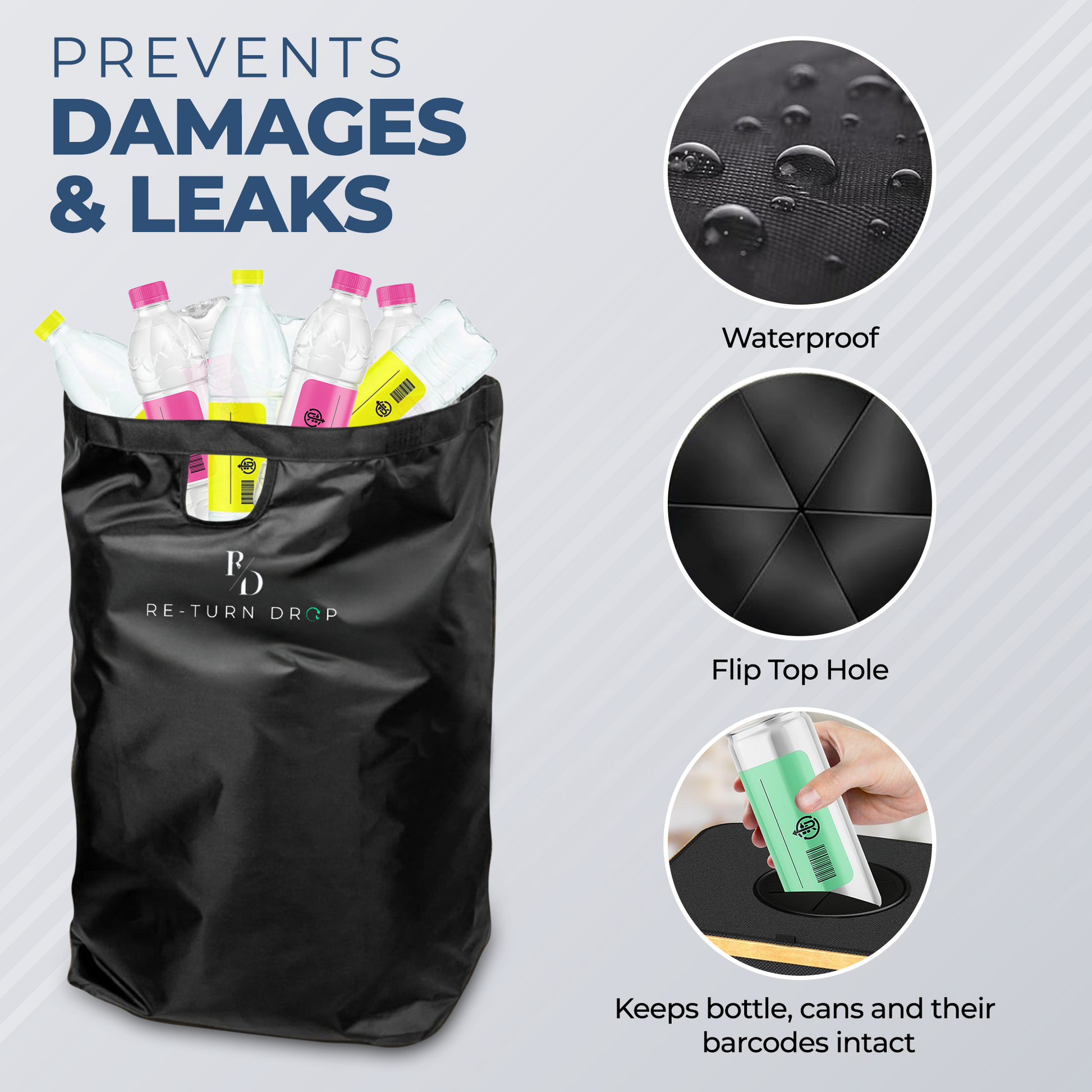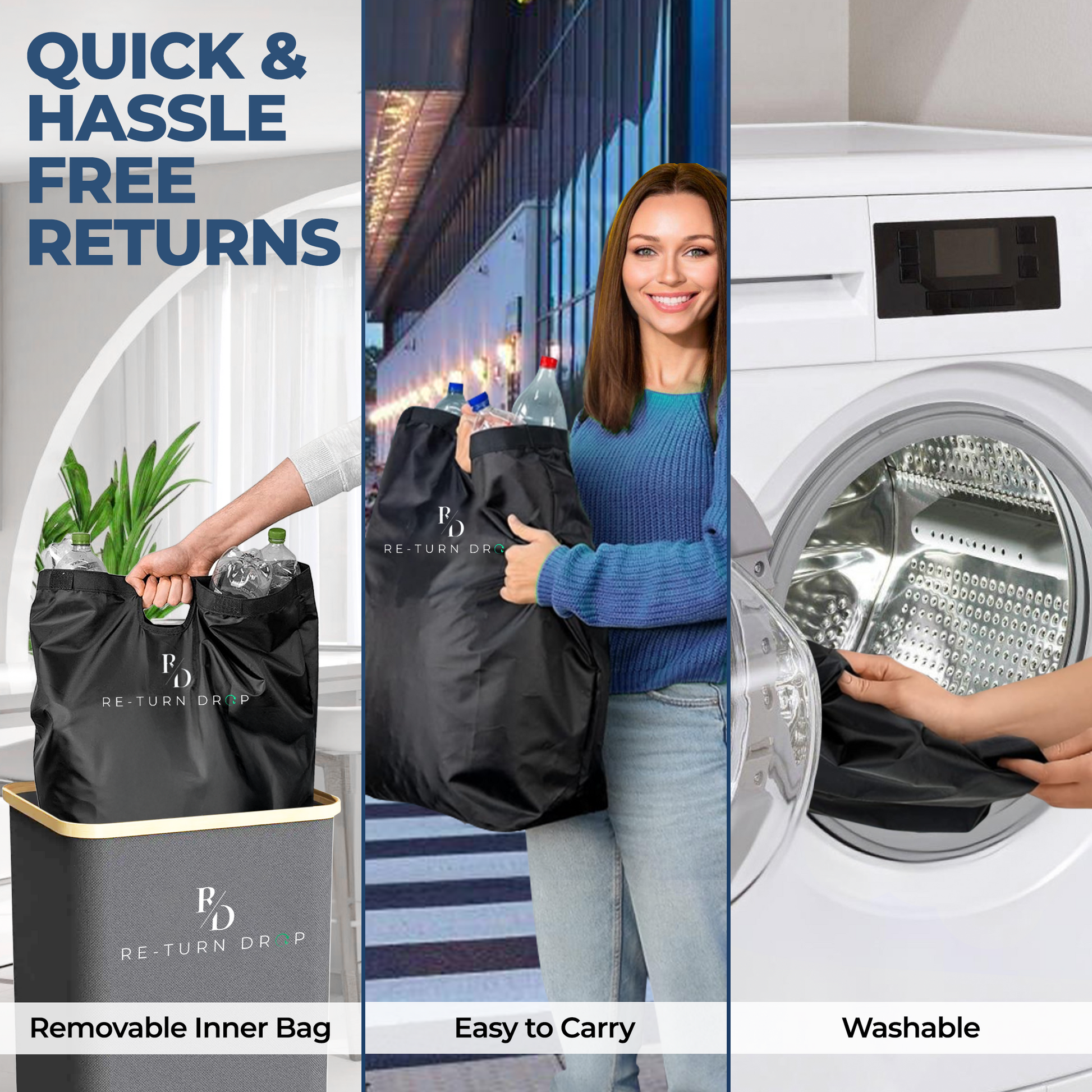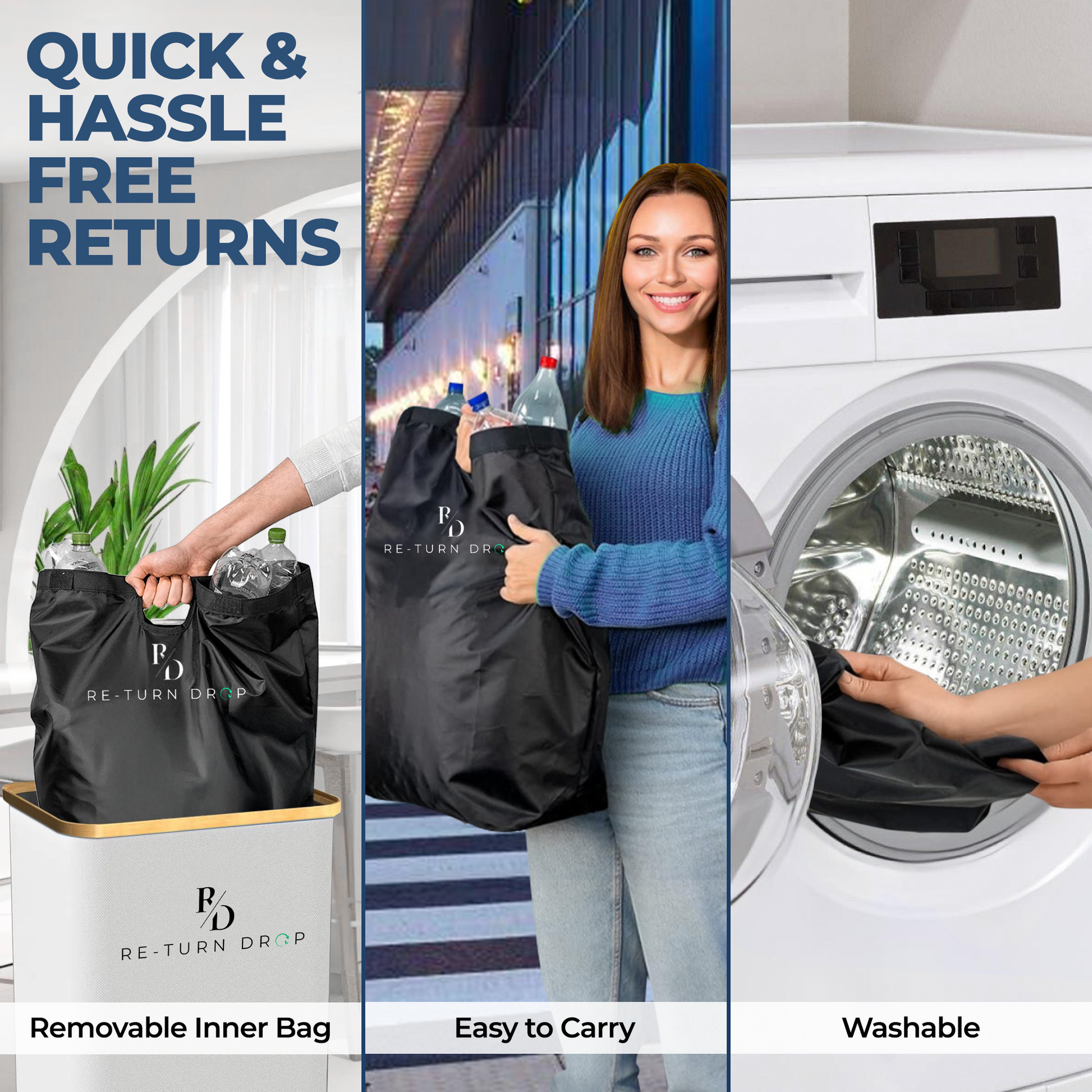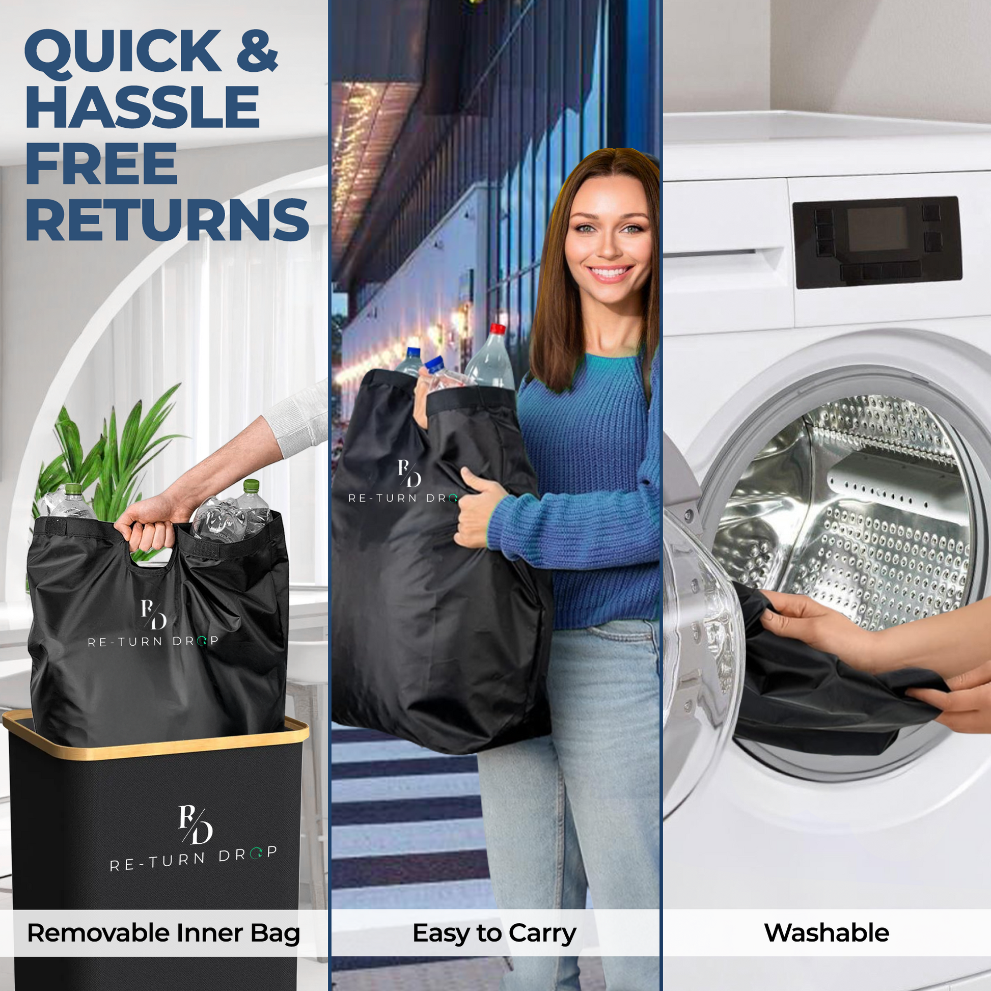 The ReTurn Station™ is an eco-friendly, premium-quality recycling bin designed to make bottle and can returns effortless. Crafted from sustainable, durable materials, it features a lightweight, foldable design for easy storage, a large capacity with a waterproof inner bag to prevent leaks, and odourproof technology to keep your space fresh. The washable, removable inner bag ensures hygiene, while its simple, organized system empowers you to reduce waste, save time, and contribute to a cleaner, greener future. Perfect for families, businesses, or anyone looking to recycle with ease and style
