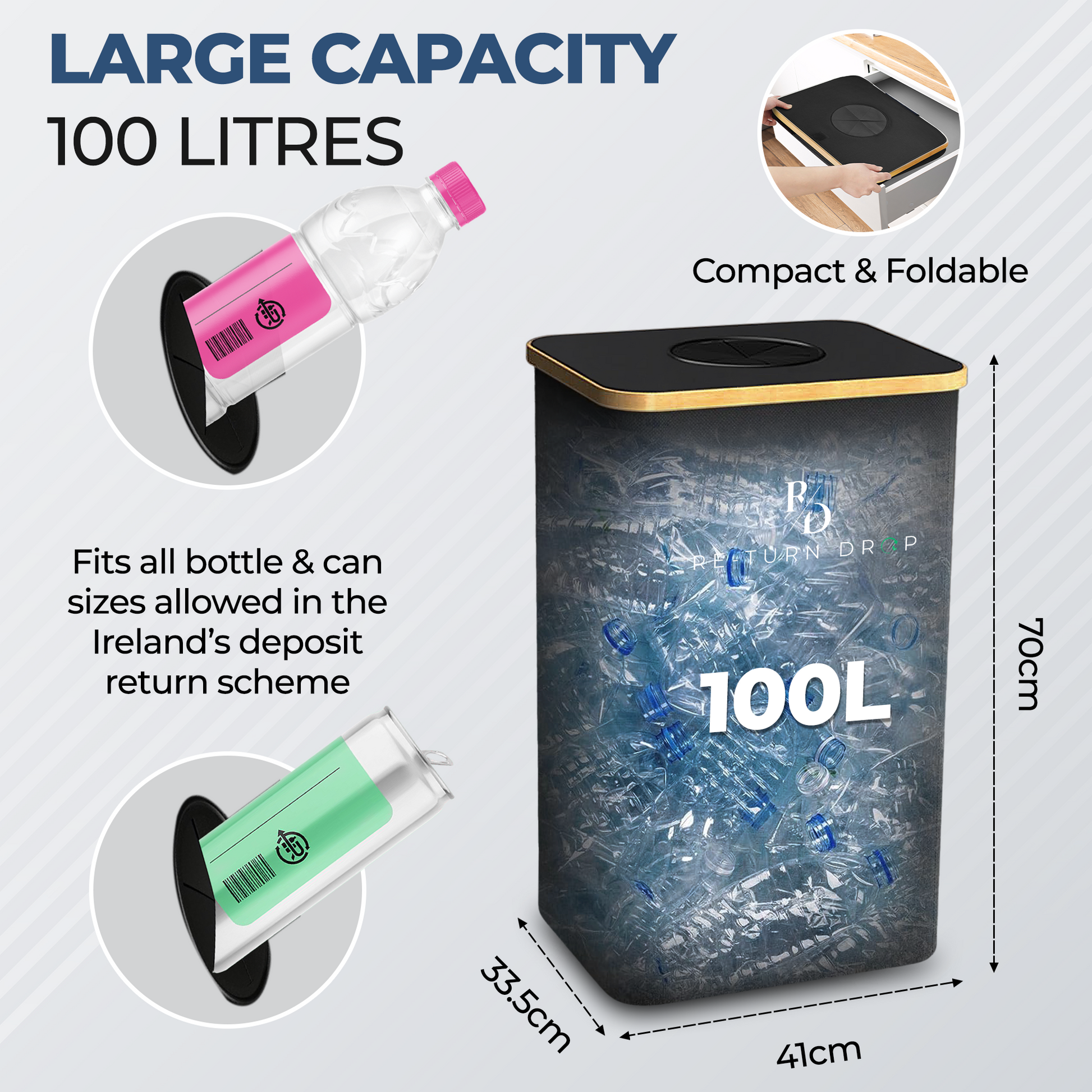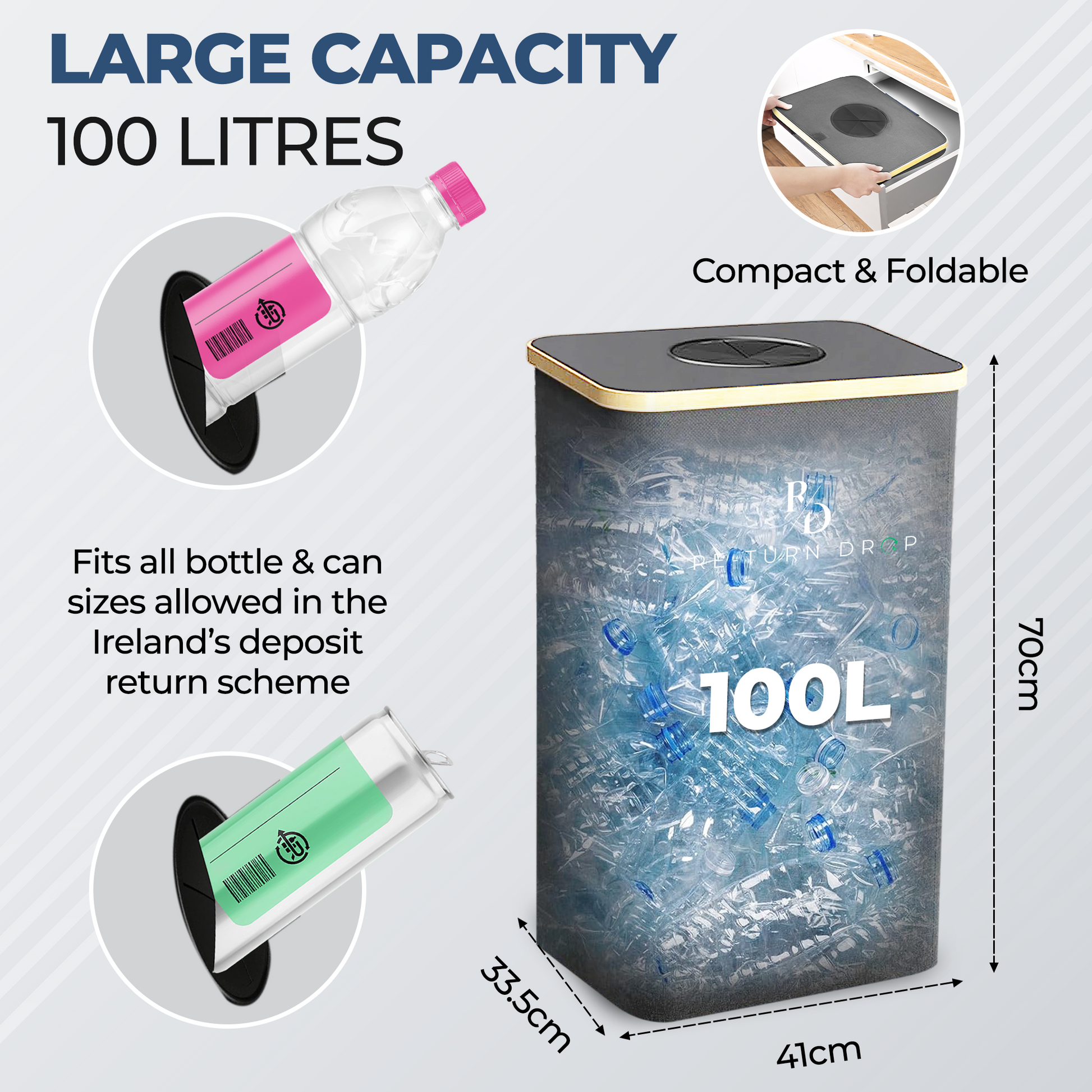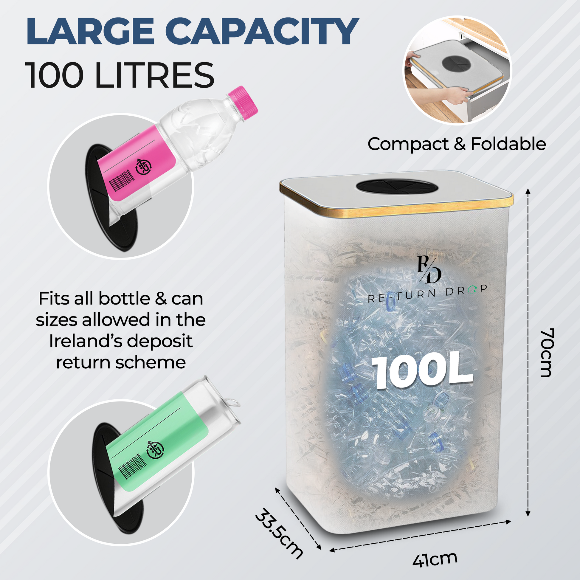 Revolutionise your return routine with the innovative Deposit ReTurn Station™—designed to keep your space spotless, simplify organization, and turn bottles and cans into cash through Ireland's Deposit Return Scheme!